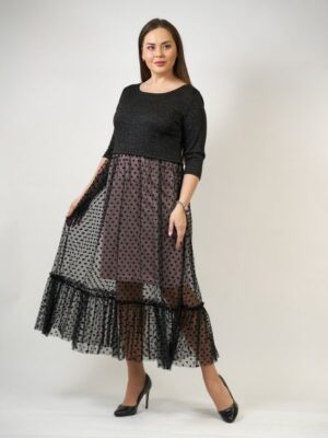 <div>Классическое платье миди, с завышенной талией прекрасно скроет недостатки фигуры и подчеркнет ее достоинства. великолепный дуэт двух трикотажных тканей —
