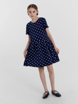 Платье в горошек – это идеальный выбор для летнего сезона. Изготовлено из легкого и приятного на ощупь материала, который обеспечивает комфорт в жаркие дни.