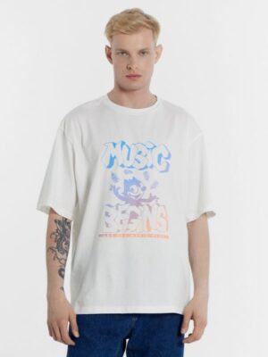 Комфортная футболка мужская из высококачественного хлопка с печатью в виде надписи "Music begins — Lets the music play / Музыкальное начало