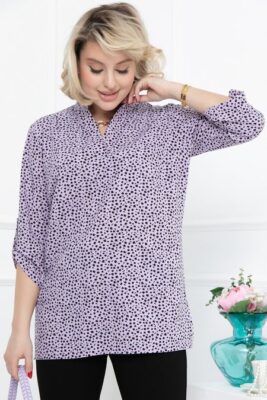Сальвия – элегантная блузка полуприлегающего силуэта из однотонной блузочной ткани. Вырез горловины V-образный, декорирован воротником стойкой.