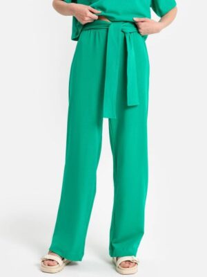 Женские брюки прямого силуэта из хлопковой кулирки – отличный выбор для комфортных повседневных образов. Частично эластичная талия со сборкой сзади обеспечивает