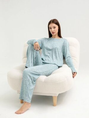 Удобная пижама женская с брюками и джемпером с длинным рукавом — лучший вариант одежды для дома из высококачественного материала. Джемпер с круглым