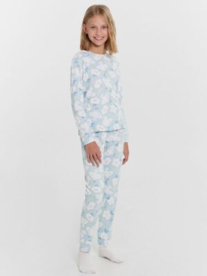 Уютная пижама для девочек включает джемпер с длинными рукавами и брюки, создавая идеальный наряд для сна и отдыха в прохладное время года.