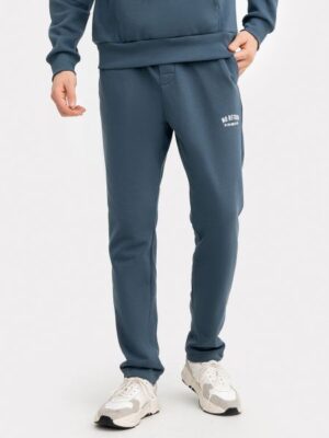 Прямые свободные мужские брюки. Выполнены из легкого трикотажного футера с подчесом. Пояс – с эластичной тесьмой внутри и шнурком-завязкой, который позволяет