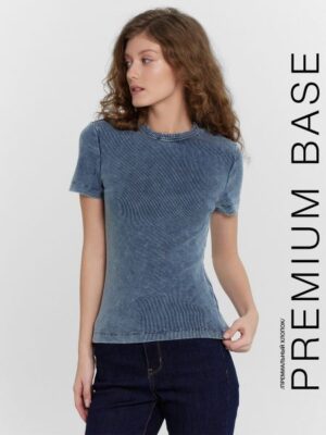 Базовая футболка женская прилегающего силуэта из трикотажного полотна рибана. Эта модель — одно из уникальных изделий, которые проходят этап дополнительной обработки.