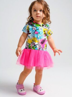 Платье трикотажное с юбкой из мягкой сетки. Верх платья из качественного и приятного на ощупь трикотажа. Высокое содержание хлопка 95%. Благодаря наличию