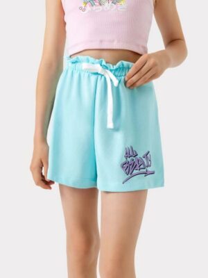 Короткие шорты для девочек из высококачественного хлопка с добавлением полиэстера. Пояс с эластичной тесьмой и регулировочным шнурком-завязкой.