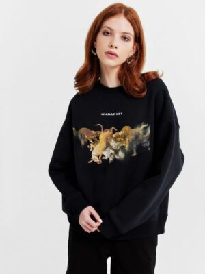 Женский свитшот оверсайз идеально подходит для создания стильных повседневных образов. Он отличается круглым вырезом горловины и длинными рукавами со спущенной