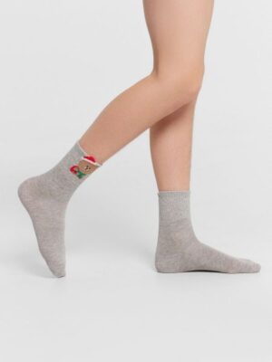 Носки детские новогодние из высококачественного хлопка рисунком в виде медведя и элементом пикота на бортике. Натуральные волокна отлично пропускают воздух