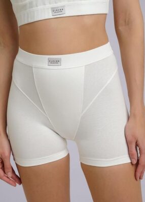 Трусы женские шорты-макси из эластичного хлопкового полотна. Обработка краев по талии — отрезной пояс с внутренней резинкой, по ноге —