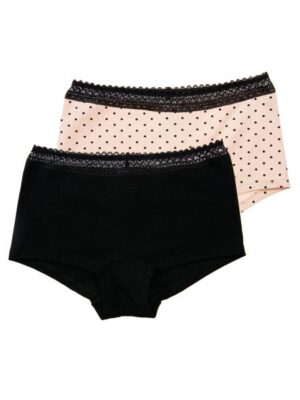 Трусы-шорты, 2 шт. в комплекте. Мягкое трикотажное полотно с высоким содержанием хлопка и добавлением эластана. Кружевная резинка. PLAYTODAY