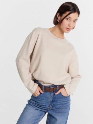 Лаконичный джемпер женский из трикотажного полотна интерлок. Полуприлегающий силуэт джемпера подчеркивает женственность фигуры, а классический круглый
