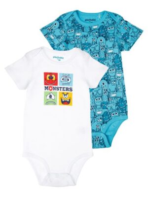 Боди с коротким рукавом из натурального хлопкового двойного трикотажа. 2 шт. в комплекте. 100% хлопок. Кнопки внизу – 2 ряда, боди растет вместе с малышом.