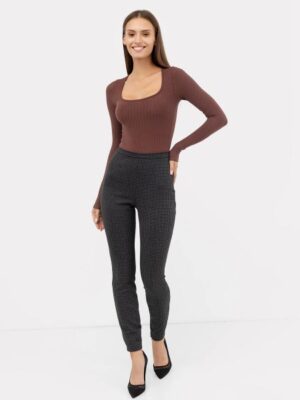 Леггинсы женские прилегающего силуэта из трикотажного полотна академик. Посадка высокая. Пояс отрезной из основного полотна. В боковом шве застежка на