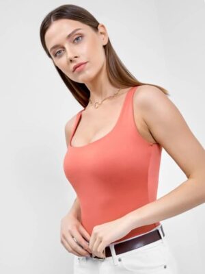 Красивое боди женское без рукавов из тонкой невесомой микрофибры. Силуэт прилегающий. Горловина формы «каре». Застегивается на книпперы.