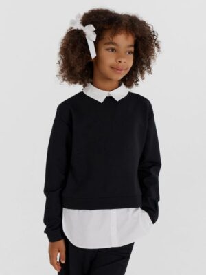 Школьный джемпер для девочек свободного силуэта из академика с имитацией рубашки. Выполнен из качественного материала академик, который обеспечивает комфорт