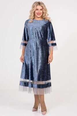 Интересное бархатное платье приталенного силуэта. Прилегание по талии — за счет эластичной тесьмы. Круглый вырез горловины обработан на спецмашине.