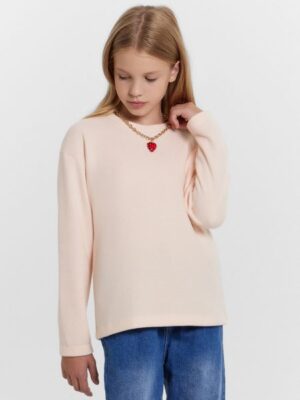 Базовый детский джемпер прямого силуэта. Горловина круглой формы. Рукав длинный. Плечо спущено, пройма углублена. В составе изделия —