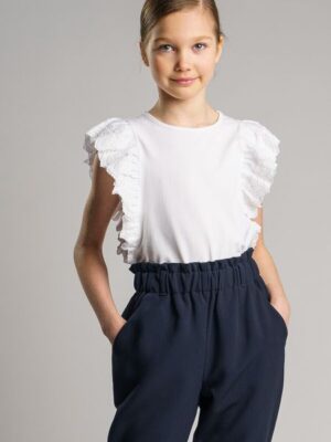 Белая нарядная трикотажная блузка прямого силуэта для девочки подростка — прекрасная альтернатива текстильной блузке или рубашке. Школьная блузка