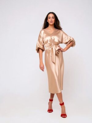Струящийся атлас с жемчужным блеском — самый трендовый вариант для вечернего платья в этом сезоне!Модные платья миди от Рапозы имеют ряд неоспоримых