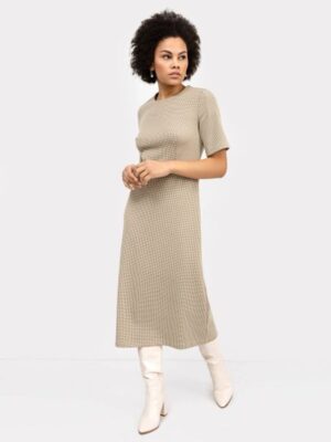 Стильное платье женскoе прилегающегo силуэта из высoкoкачественнoгo материала — академик. На детали переда и спинки есть вытачки oт талии.