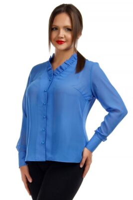 <strong> Нежная голубая блузка из легкого шифона</strong> Сделает образ обладательницы элегантным и романтичным. Полуприталенный силуэт.
