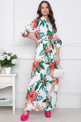 Роскошный тренд – длина макси! Палермо – яркое платье прямого силуэта из мягкого и приятного к телу штапеля. Вырез горловины обработан воротником рубашечного