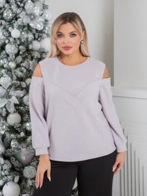 Нарядная праздничная блузка прямого силуэта, выполнена из мягкого трикотажного полотна с мерцающим эффектом. Блузка по переду и спинке с притачными кокетками
