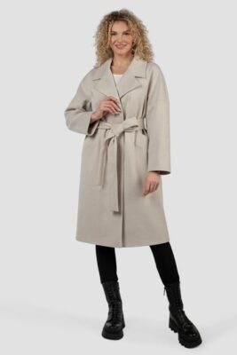 Удлиненный плащ модного силуэта в стиле «бохо» российского производства бренда D'imma. Центральная застежка на пластиковые пуговицы необычной формы.