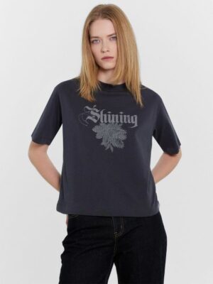 Стильная однотонная футболка женская свободного силуэта из 100% хлопка. Модель с принтом в виде надписи "Shining / Застенчивая"
