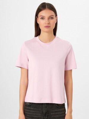 Футболка прямого силуэта из трикотажного полотна кулирка. Горловина круглой формы, широкая обтачка из рибаны. Рукав втачной, широкий. Футболка слегка укорочена.