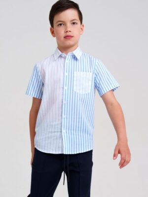 Школьная рубашка с коротким рукавом — настоящая база гардероба для школьника! Классическая рубашка выполнена из ткани с высоким содержанием хлопка