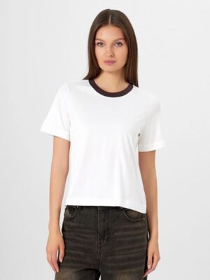Женская футболка прямого свободного силуэта — это базовая и универсальная модель, которая легко впишется в повседневный гардероб. Классическая круглая