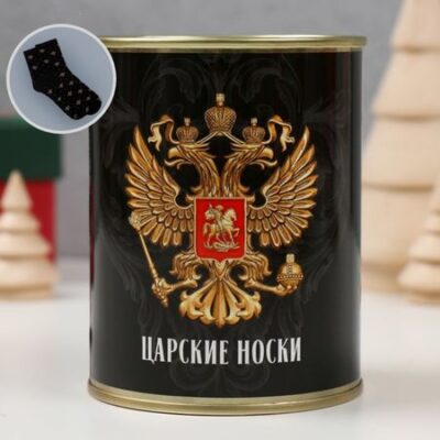 Носки с принтом в банке «Царские» (мужские, «Геральдическая лилия»)