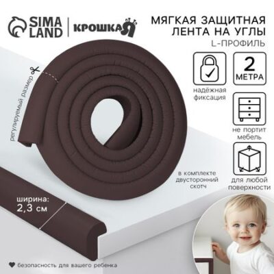 Лента защитная для углов мебели, 2 м, ширина 2,3 см, L-профиль, цвет коричневый, Крошка Я. Крошка Я