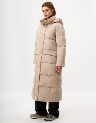 Стеганое длинное пальто
