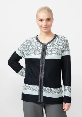 Материал: 100% тонкая мериносовая шерсть. Комфортный крой. Круглый вырез. Длинные рукава. Укороченная длина. Сшита в Испании из итальянской жаккардовой ткани.