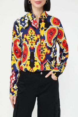 Рубашка атласная с принтом Piombo