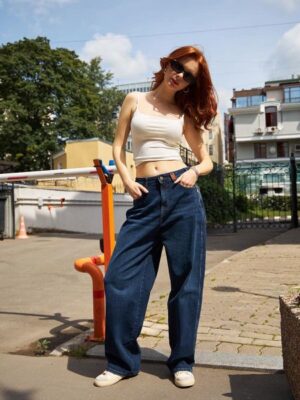 Обновите свой образ трендовыми женскими джинсами Baggy Fit! Эта модель — не просто джинсы, это смелый эксперимент с кроем и силуэтом.