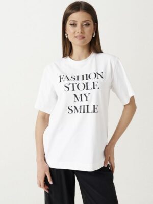 Перевод принта: Make your own story — будь автором своей истории.<br> Футболка выполнена из премиального хлопка. Авторский принт нанесен фактурными