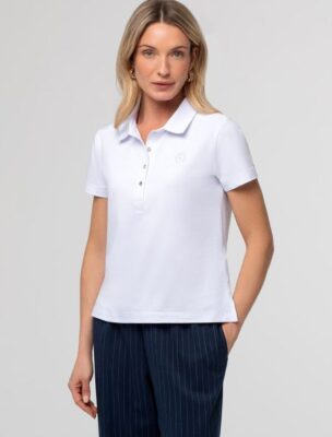 Футболка-поло выполнена из премиального хлопка. Модель украшена золотистыми пуговицами и вышитым логотипом бренда. Успешная классика на все времена.