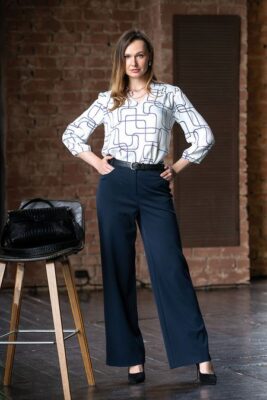 Свободный пошив не будет сковывать ваши движения . Удлиненые прямые брюки . Карманы с отрезным бочком. Застежка гульфик с молнией и одна пуговица.