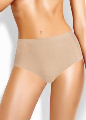Трусы макси на высокой посадке из интерлока, состав 80% хлопок, 20% эластан. Боковые швы смещены в сторону переда, по ножке бесшовная обработка, полотно