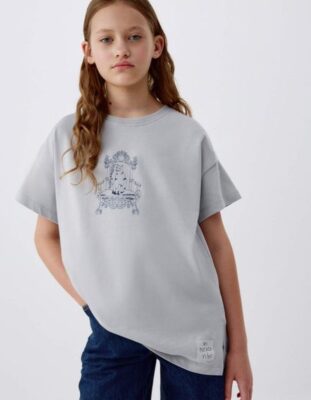 Женская футболка F5, Oversize fit (свободный силуэт), круглый вырез горловины, короткий цельнокроеный рукав. Выполнена из классического трикотажного полотна.