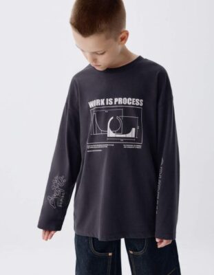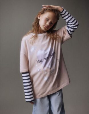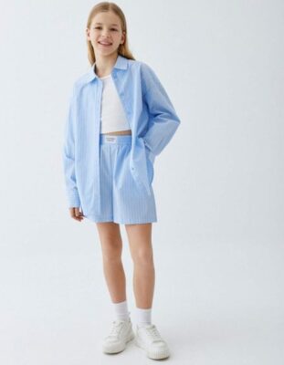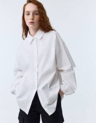 Рубашка оверсайз с разрезами на рукавах для девочек