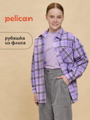 Флисовая рубашка для девочки. Объемная рубашка с классическим отложным воротником и спущенным плечом подарит ребенку комфорт и не будет стеснять его движений.