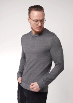Классический вязаный джемпер с круглым вырезом горловины. Изделие изготовлено из мягкой акриловой пряжи в сочетании с хлопком. Данный джемпер удачно впишется