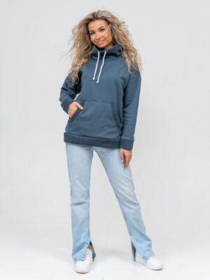 Утепленное худи женское это — абсолютный тренд сезона 2022-2023. Базовая толстовка спортивная с начесом серого цвета выполнена из качественных и