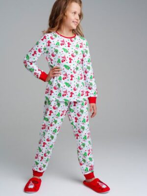 Пижама: лонгслив, брюки. Эластичные манжеты. Эластичный пояс с тесьмой позволяет легко надевать брюки и утягивать до комфортной посадки.