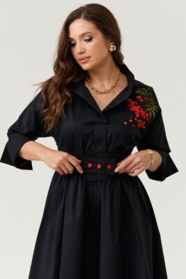 Платье женское из хлопковой ткани для повседневной носки. Без подкладки. Платье полуприлегающего силуэта. Платье отрезное по линии талии и имеет небольшую сборку.